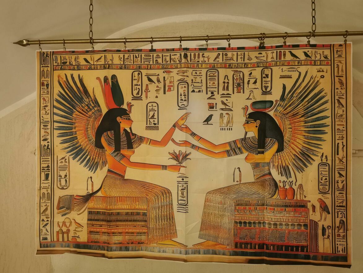 Firana zasłona tkanina dekoracyjna motyw starożytny Egipt