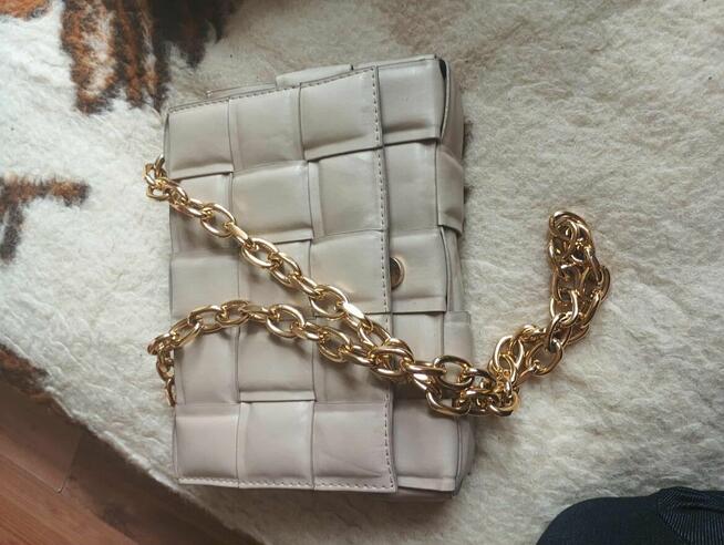 Przedmiotem sprzedaży jest zgrabna damska torebka w stylu boho. Torebka z klapką w jasnym kolorze beżu. Wewnetrz torebki ...
