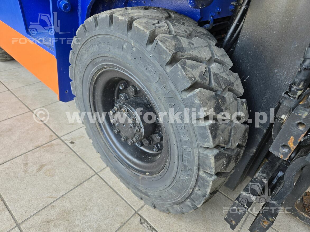 Praktyczny i wygodny przesuw boczny wideł. Prawie nowe opony pneumatyczne.