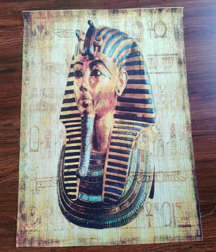 Całość utrzymana w charakterystycznych dla sztuki starożytnego Egiptu kolorach i stylu.